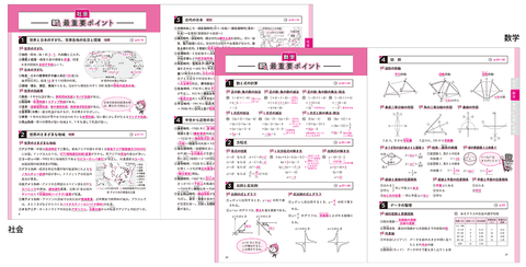 また、各教科の巻末には公立高校の入試問題を中心に出題する「総復習テスト」を用意しており、実力試しもできるようになっている。