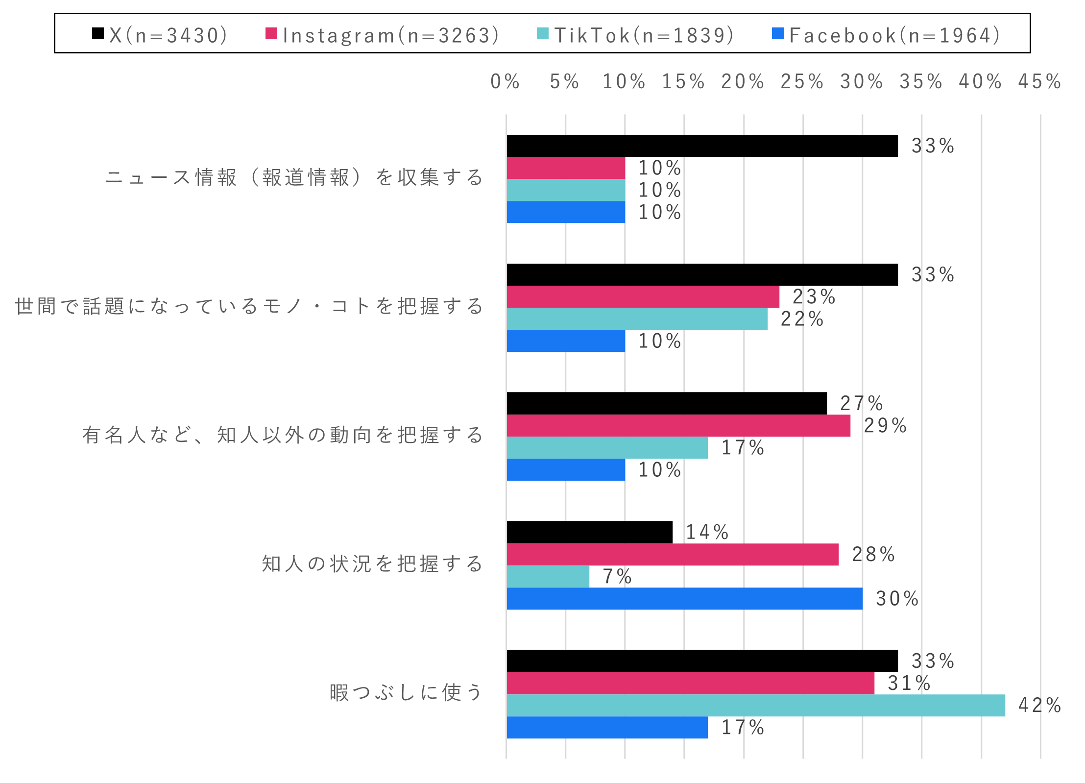 SNS利用実態を6962人に調査──Xは「ニュース」、Instagramは「有名人チェック」、TikTokは「暇つぶし」
