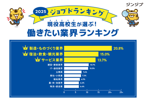 高校生の就職を支援する株式会社ジンジブは、高校生向けの職業体験イベント「おしごとフェア2025」に参加した現役高校生に将来「なりたい職業」のアンケートを実施した結果を報告した。