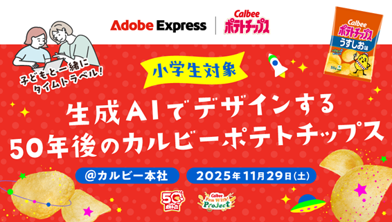 アドビ株式会社とカルビー株式会社は、小学生とその保護者を対象としたワークショップ「“子どもと一緒にタイムトラベル!”生成AIでデザインする50年後のカルビーポテトチップス」を2025年11月29日(土)に開催すると発表した。