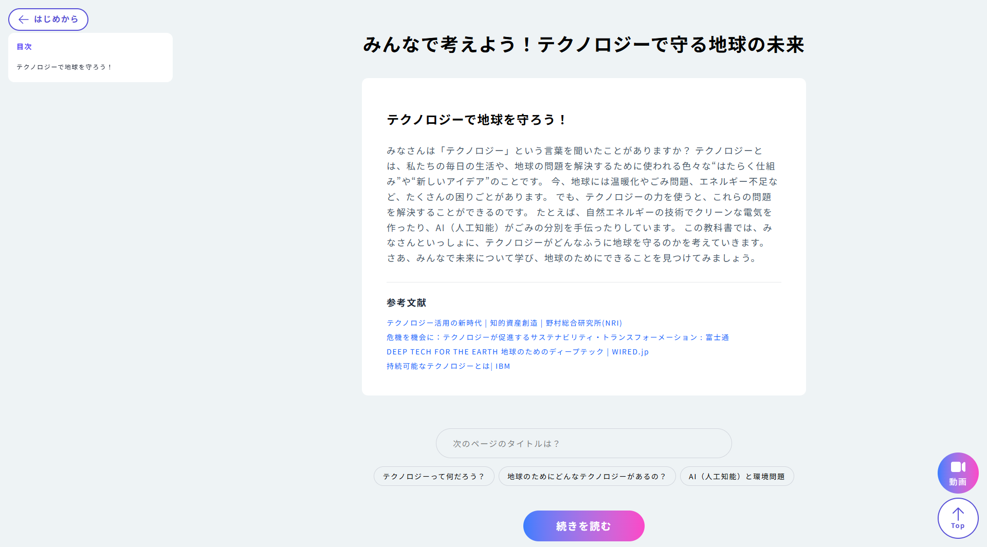高校生と大学生が生成AIでつくる「未来の教科書」、動画生成・PDF出力・参考文献表示機能を搭載