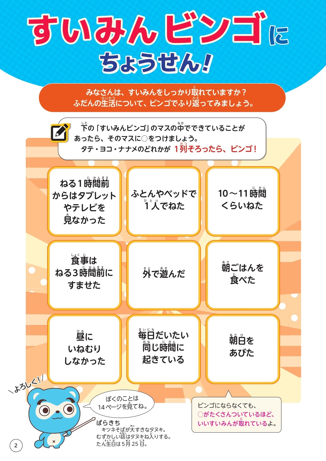 教材には、児童が自分の生活リズムや睡眠時間を見直すためのワークシートや、親子で取り組めるチェックリスト、保護者向けの専門家コラムなども収録している。また、同社の公式キャラクター「ぱらきち」が登場するなど、子供が親しみやすい工夫を盛り込んだ。