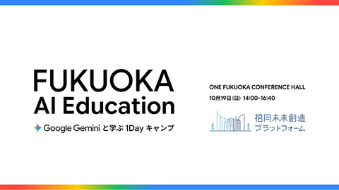 「Google AI 学生アンバサダープログラム」の運営を受託している株式会社qutoriは、「FUKUOKA AI Education ~Google Geminiと学ぶ 1Dayキャンプ~」を福岡未来創造プラットフォームと共同で10月19日(日)の14時から19時30分までにONE FUKUOKA BLDG.(福岡市・天神)で開催する。