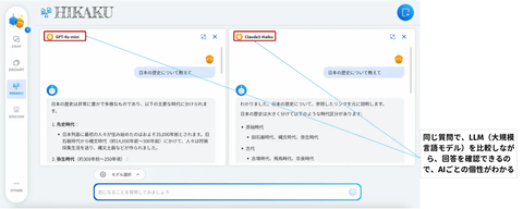 同じプロンプトを利用した場合でも、LLMによって回答は異なるが、同サービスではLLMの回答を並べて比較することが可能だ。児童生徒は、それぞれのAIの特性や得意分野を理解し、「なぜ答えが違うのか」「自分の目的に合ったAIはどれか」を考える力を養うことができる。