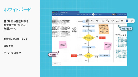 今回発表された新機能には、無限キャンバスで共同編集が可能な「ホワイトボード」、ブロックベースのエディタを採用した「テキストドキュメント」、音声記録から議事録を自動生成する「Goodnotes AI」などが含まれる。さらに、最大50人までが同時に作業できる「リアルタイムコラボレーション」機能や、作業領域を確保しながらペン設定などをスムーズに切り替えられる新しいツールバーも紹介された。