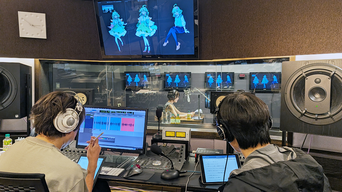 授業では、声優の反田葉月(たんだはづき)氏が素材提供に協力。ジーアングルの収録スタジオにリモート接続し、生徒たちがオンラインで音声収録に立ち会い、遠隔での収録ディレクションも体験している。また、生徒たちは編集や合成音声の実装作業も行い、音声表現の工夫点や著作権・倫理に関する注意点を学んだ。