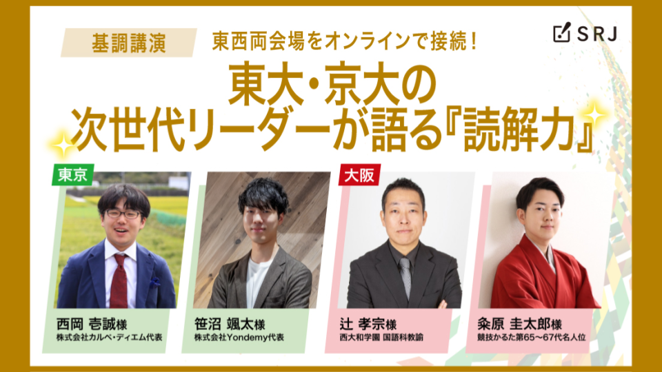 株式会社Yondemyの代表取締役・笹沼颯太氏は、2025年10月19日、東京都と大阪府で同時開催された株式会社SRJ主催の「2025年SRJ秋期大会」において、基調講演「東大・京大の次世代リーダーが語る『読解力』」に登壇した。