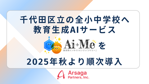 アルサーガパートナーズ株式会社は、東京都千代田区立の全小中学校が、教育生成AIサービス「AI+Me(アイミー)」を2025年秋から順次導入すると2025年10月28日に発表した。導入対象は、教員と児童生徒全員である。