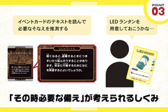 能美防災は、教育現場からの「防災教育をもっと身近にしたい」という声を受けて同作を企画し、開発初期段階から防災士や学校関係者の意見をヒアリング。「教える防災」から「楽しく体験する防災」をコンセプトとして、考えて行動する力を楽しく育むツールとして完成している。
