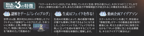 また、「レイのブログ」のほか、謎解きゲームの要素を取り入れながら、闇バイトの危険性を学ぶ「レイの失踪」を利用した出張授業を高校や中学校で実施する。11月以降の実施校は、県立倉吉北高校(11月13日)、青翔開智中学校(11月27日)、青翔開智高等学校(2026年3月12日)。