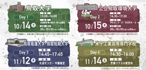 スクールキャラバンは、11月12日(水)に鳥取看護大学・鳥取短期大学、11月14日(金)に米子工業高等専門学校で実施予定だ。