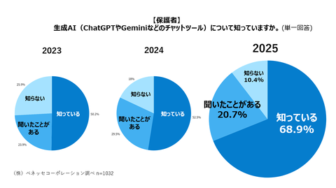株式会社ベネッセコーポレーションは、全国の小学3年生から6年生とその保護者1,032組を対象に、生成AIの認知や利用実態などに関する意識調査を実施した。
