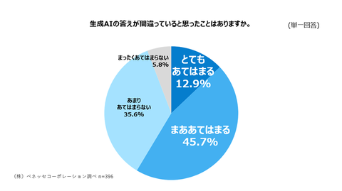 なお、生成AIの回答が間違っていると思った経験を持つ小学生も約6割おり、親しみと信頼と戸惑いが同時に存在している実態が明らかになった。