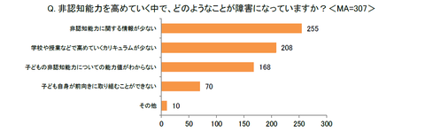 一方で、非認知能力に関する情報の不足や学校や授業でのカリキュラム不足を課題とする声も多く、非認知能力の定義が曖昧な点や、育成・評価方法が確立していないことへの課題感も浮き彫りになっている。