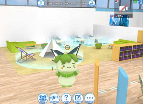 メタバース空間内では、子供たちを見守る「オンライン支援員」や、会話や支援のきっかけとなるマスコットキャラクター「こさぽん」がアバターとして登場し、児童生徒とのコミュニケーションを図る。