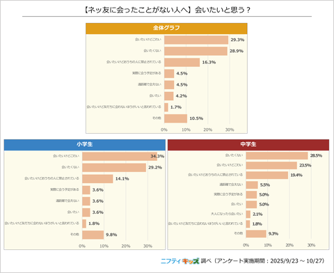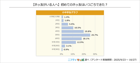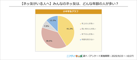 ニフティ株式会社は、子供向けサイト「ニフティキッズ」上で実施した「ネッ友」に関するアンケート結果を2025年11月27日に発表した。調査は9月23日から10月27日にかけて実施し、1,664件の有効回答が集まった。
