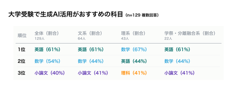 ・AIを使いたい科目は、英語、数学、小論文