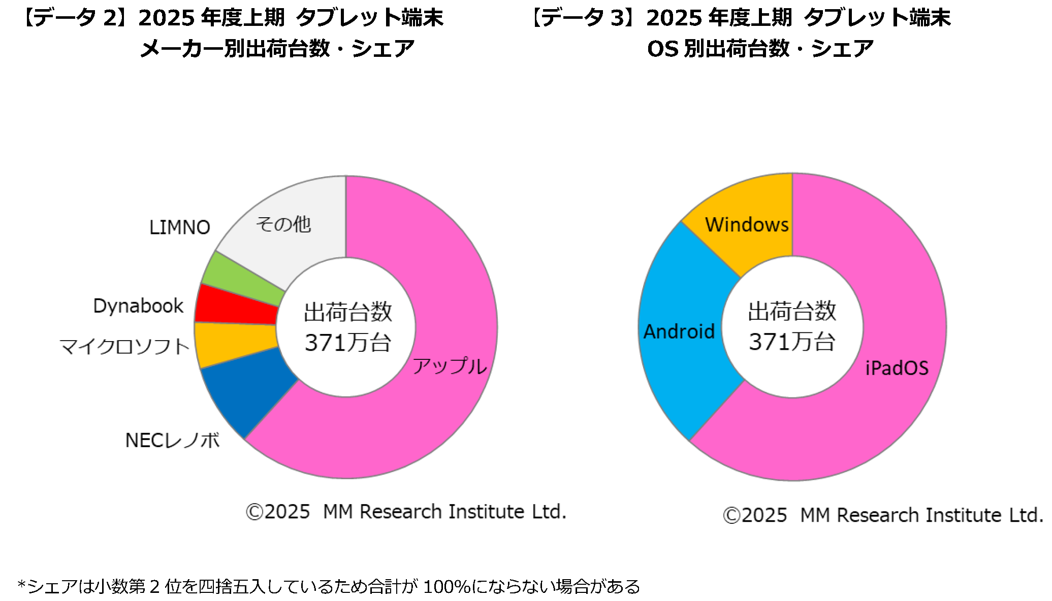 ICT市場調査コンサルティングのMM総研は、2025年度上期(2025年4月から9月)の国内タブレット端末の出荷台数を調査し、その結果を発表した。