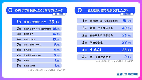 株式会社ベネッセコーポレーションが提供する「進研ゼミ 高校講座」は、全国の高校1年生~3年生756名に実施した「2025年の意識や学びの変化に関する調査」の結果を2025年12月9日に発表した。