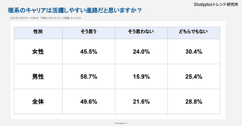 スタディプラス株式会社のStudyplusトレンド研究所は、「理系に対するイメージ調査」の結果を2025年12月16日に発表した。