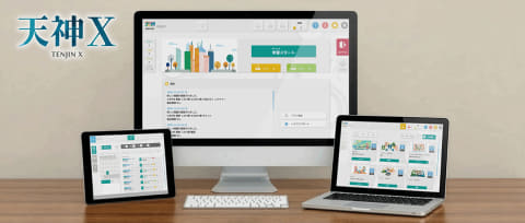 天神Xは、小学校と中学校の全学年を対象に、国語・算数(数学)・理科・社会・英語・生活といった教科書に準拠した学習内容を提供するクラウド型教材である。今後は、教科別レポートや日ごとの学習状況をまとめたデイリーレポートなどの機能拡充も予定されている。