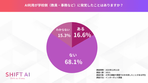 株式会社SHIFT AIは、大学の講義や課題における生成AIの「こっそり利用」に関する実態調査を実施し、2025年12月29日に調査結果を発表した。