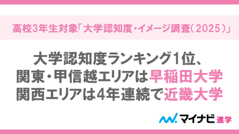 株式会社マイナビが運営する、「マイナビ進学総合研究所」は、2026年3月に卒業予定の高校3年生に調査した「大学認知度・イメージ調査(2025)」の結果を2026年1月8日に発表した。