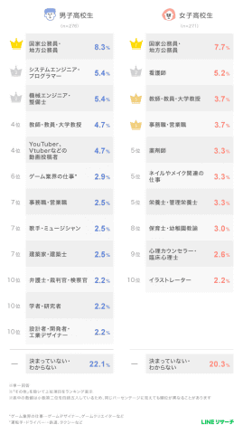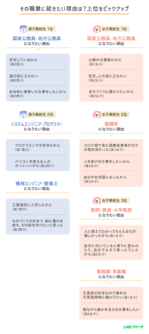 高校生の希望職1位は「公務員」、中学生は「好き」が動機 LINEリサーチ調査
