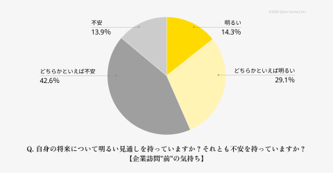 企業訪問を通じて、中高生の将来への意識にも変化が見られた。企業訪問前は「将来に明るい見通しを持っている」の回答は43.4%にとどまり、56.5%が「不安」を抱えていた。しかし、企業訪問後には「明るい見通しを持っている」との回答が86.1%に増加した。働く現場を体感したことで、将来に対する見通しが前向きになったことがわかる。