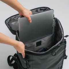 同製品は、開発担当者の中学生の子供の日常から着想を得たものだ。リュックに詰めた多くの教科書が動き、背負う際に重心が偏ってバランスを崩すといった課題をもとに、教科書やパソコンをスムーズに収納できる箱型構造を採用し、内部で荷物をゴムで固定できる設計となっている。