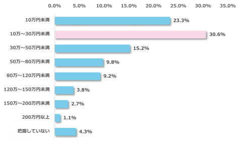 年間の教育費では、「10万~30万円未満」が30.6%で最も多い。また、30万円未満が53.9%と半数を超えている一方で、「30万円以上」と回答した保護者も41.8%にのぼり、教育段階や学習環境によって教育費に大きな差が生じている状況が浮き彫りになった。