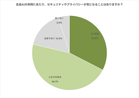 調査によると、生成AIの利用時にセキュリティやプライバシーが気になることが、「よくある」または「ときどきある」と回答した人は78.7%となり、多くのユーザーが生成AIに不安を感じながら利用している現状が明らかとなっている。