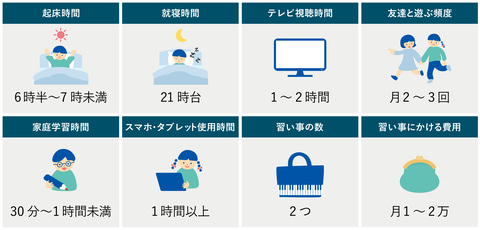 同調査は、平均値でなく各設問で最も多く選ばれた回答を中心に数字で整理。デジタル機器の利用時間については、学校での使用時間を除き、家庭内での利用に限定して回答を得ている。