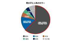 男の子には黒系(62.7%)が人気だが、そのうち54%が「縁がバイカラー(2色使い)」のデザインを選択。定番の黒に、自分の好きな色を組み合わせるスタイルが多く選ばれている。