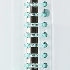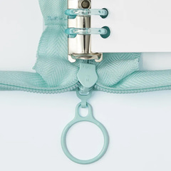ジッパーの引き手は大きめでつかみやすい丸型とし、ルーズリーフを綴じるバインダーは軽くて丈夫なメタルベースのプラスチックバインダーを採用。標準収納枚数は50枚となっている。