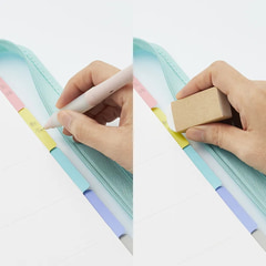 また、6mm横罫ルーズリーフ10枚と、シャープペンや鉛筆で数回書いて消せるラミネートタブインデックスが付属する。