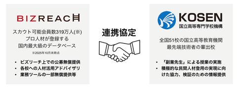 ビズリーチと高専機構は、連携協定のもとで2022年2月から民間企業のプロフェッショナル人材を「副業先生」として全国の高等専門学校に招く「人材育成モデル」に取り組んでいる。