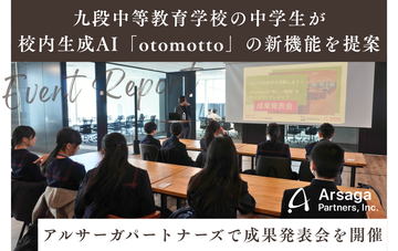 アルサーガパートナーズ株式会社は、千代田区立九段中等教育学校の生徒を対象とした生成AIワークショップの成果発表会を1月23日に開催した。開催場所は、アルサーガパートナーズ本社。
