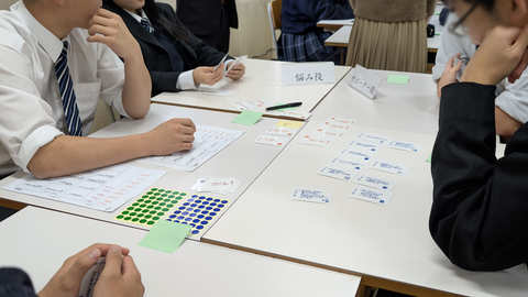 その後、サポーター役と悩み役は、お互いにしてあげたいことを「遊びに誘う」「話を聞く」などの12種類の対応策が書かれたカードから選び、理由を伝え合う。生徒らは、グループ内での意見交換を通じて、友人が直面している悩みや気持ちを想像し、寄り添うことや対話を行うことの重要性について学んだ。