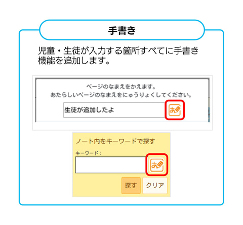 なお、入力箇所すべてに手書き入力機能を追加している。これにより、キーボード操作に慣れていない低学年の児童生徒でも、チャットやコメントを含む機能を制限なく利用できる。そのほか、スタンプ機能の追加やスライドショー機能、フォントサイズの自動調整、匿名設定の柔軟化なども実施した。