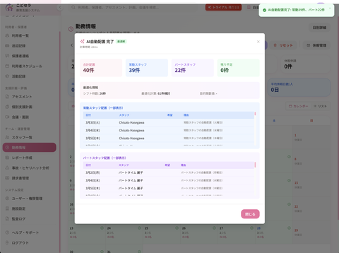 さらに、配置基準とスタッフの希望からAIがスタッフシフトを調整する機能をはじめ、日々の様子をリアルタイムに共有する保護者向けアプリ「こどセラ for Parents」などを用意する。