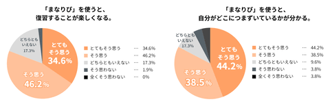 学習意欲や学習体験については、児童へのアンケート結果から「理解のしやすさ」や学習への前向きな感情を高める効果が確認されたという。まなりぴを利用した児童のアンケートでは、肯定回答(とてもそう思う、そう思う)の割合が「復習することが楽しくなる」で80.8%、「自分がどこにつまずいているかがわかる」が82.7%だった。