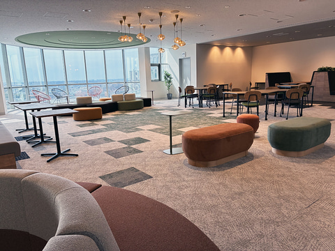 大学が掲げたコンセプトは、価値観の異なる学生が出会い、新しい発想や交流が生まれる場を目指す「クロスロード」である。イトーキチームの学生9名は既存ラウンジの利用者に聞き取りを行い、椅子が固くてくつろげない、落ち着いて過ごせない、席の配置が使いにくいといった声を集めた。その結果、学生が日常的に集い、学びや交流を深めながら、新しい挑戦へ踏み出せる居場所づくりを目指している。