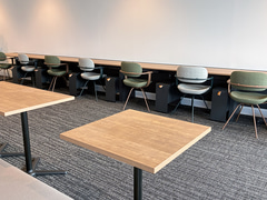 全体のインテリアは、学生自身が居心地よく安心できると感じる落ち着いた色や素材で統一した。グループでの学習・交流エリアには電源を備えたテーブルや可動式の家具を配置し、個人集中エリアには荷物置き場も設けた。