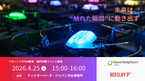株式会社レッドクリフは、認定NPO法人グッドネーバーズ・ジャパンと連携して「ドローンプログラミング体験イベント」を2026年4月25日(土)に開催する。対象はひとり親家庭の中高生で、参加費は無料。すでに募集は締め切られている。