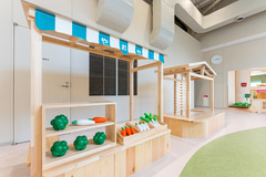 ごっこひろばでは、役割を決めて遊ぶ中で言語的知能や対人的知能に働きかける。相手の気持ちを想像しながらコミュニケーションを取る経験は、社会性や協調性の発達にもつながるという。