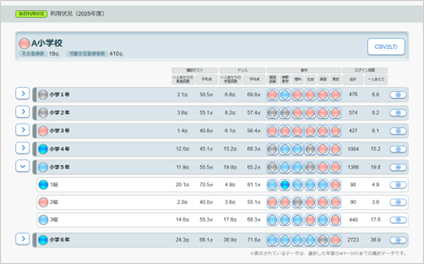 学校管理職向けの機能では、子供の成績分析に加え、各教員の利用状況を一覧できるようになり、学校全体の活用促進に生かすことが可能だ。教育委員会向けの機能では、管轄内の小中学校における利用状況を一覧で確認できる。クラス単位で成績を分析できるため、データに基づいた教育施策の立案や活用推進がしやすくなる。