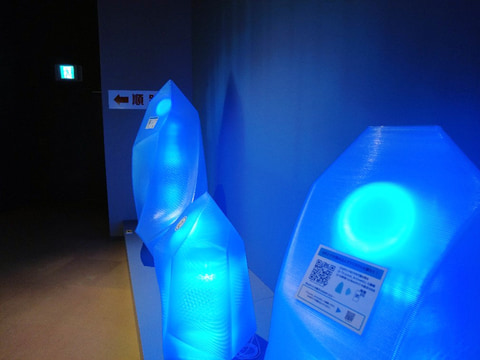 寄贈を受けた米子高専の学生は、展示物をそのまま置くだけではなく、展示場所に合わせた独自の改造を施している。岩オブジェの数や発光パターンを変えられるようにし、内部のLEDテープにも新しい演出を追加。さらに、来場者が自分のスマートフォンを使って光の動きを制御できるアプリも開発した。