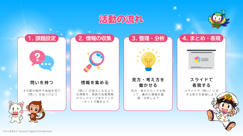 今回のテンプレートは、東京大学藤本研究室との共同研究の成果として制作された。ゲームを通して学んだ地域の情報を児童生徒が自らまとめ、表現する活動につなげることで、より深い探究的な学びや地域理解を支援する狙いがある。