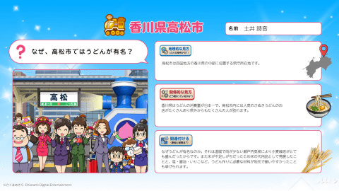『桃太郎電鉄 教育版』は、株式会社コナミデジタルエンタテインメントが提供する、学校教育での利用を想定した『桃太郎電鉄』の教育向け教材である。ゲームを通じて地域に関する情報に触れられる点が特徴で、児童生徒が日本各地の特色や地域の違いを知る学習に活用できる。